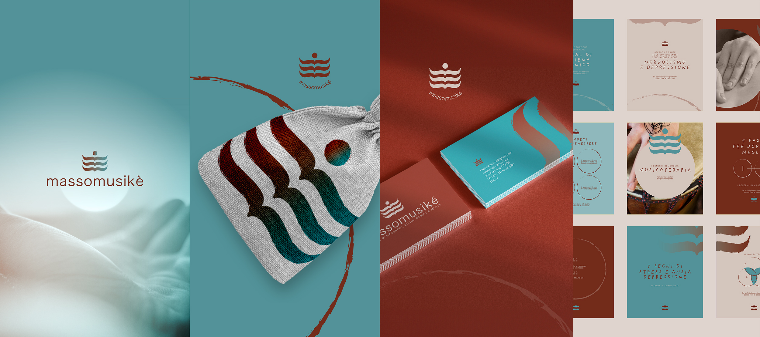 Nel panorama italiano, Massomusikè si muove in uno spazio ancora poco esplorato. Se pratiche come l’olistica, la musicoterapia integrata o il massaggio vibrazionale sono ormai diffuse, è raro trovare realtà che propongano un percorso così strutturato e multidisciplinare, sostenuto da un linguaggio visivo altrettanto chiaro e intenzionale. Molte identità del settore si rifugiano in un’estetica “new age”, spesso poco leggibile o stereotipata. Da qui nasce la scelta di prendere le distanze da quell’immaginario, per costruire qualcosa di più centrato, essenziale e credibile.
